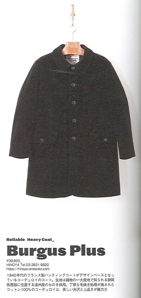 2021秋冬 コレクション バーガスプラスオリジナルのコーデュロイコートが掲載されました。