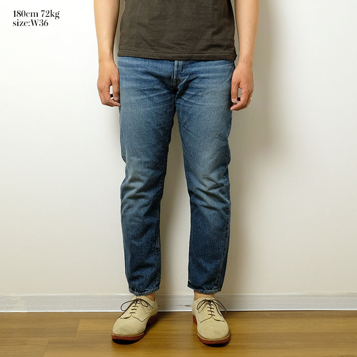やや短めのジャストレングスを採用しており、裾の加工感をそのまま楽しめます。