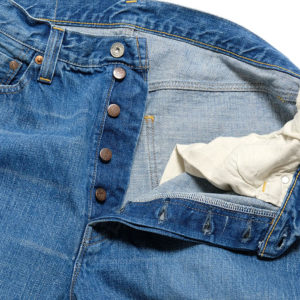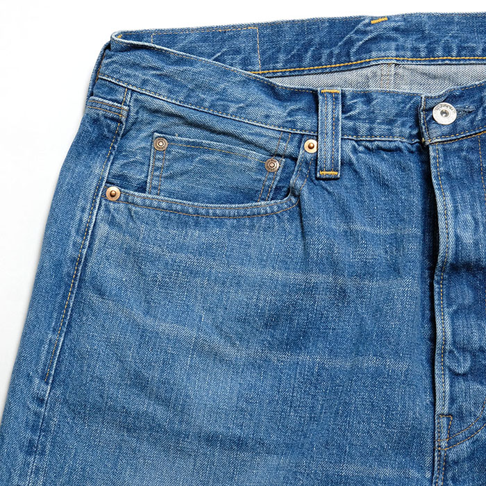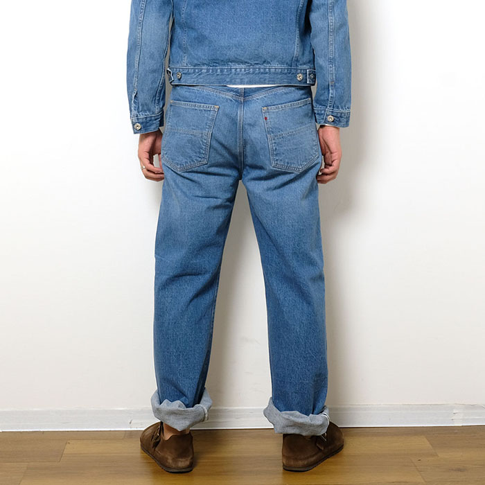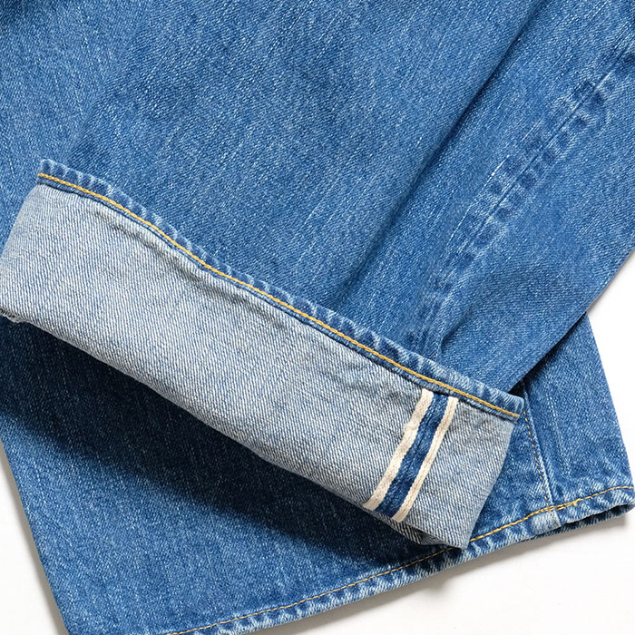 腰を包むパターンワークが特徴の硬派なセルビッチジーンズです。
