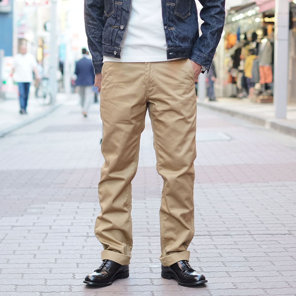 こちらのカラーはベーシックなKhaki。合わせるトップスを変えれば、カジュアルにも、またキレイ目にも履きこなすことができます。