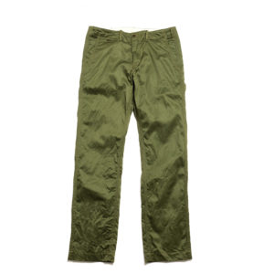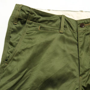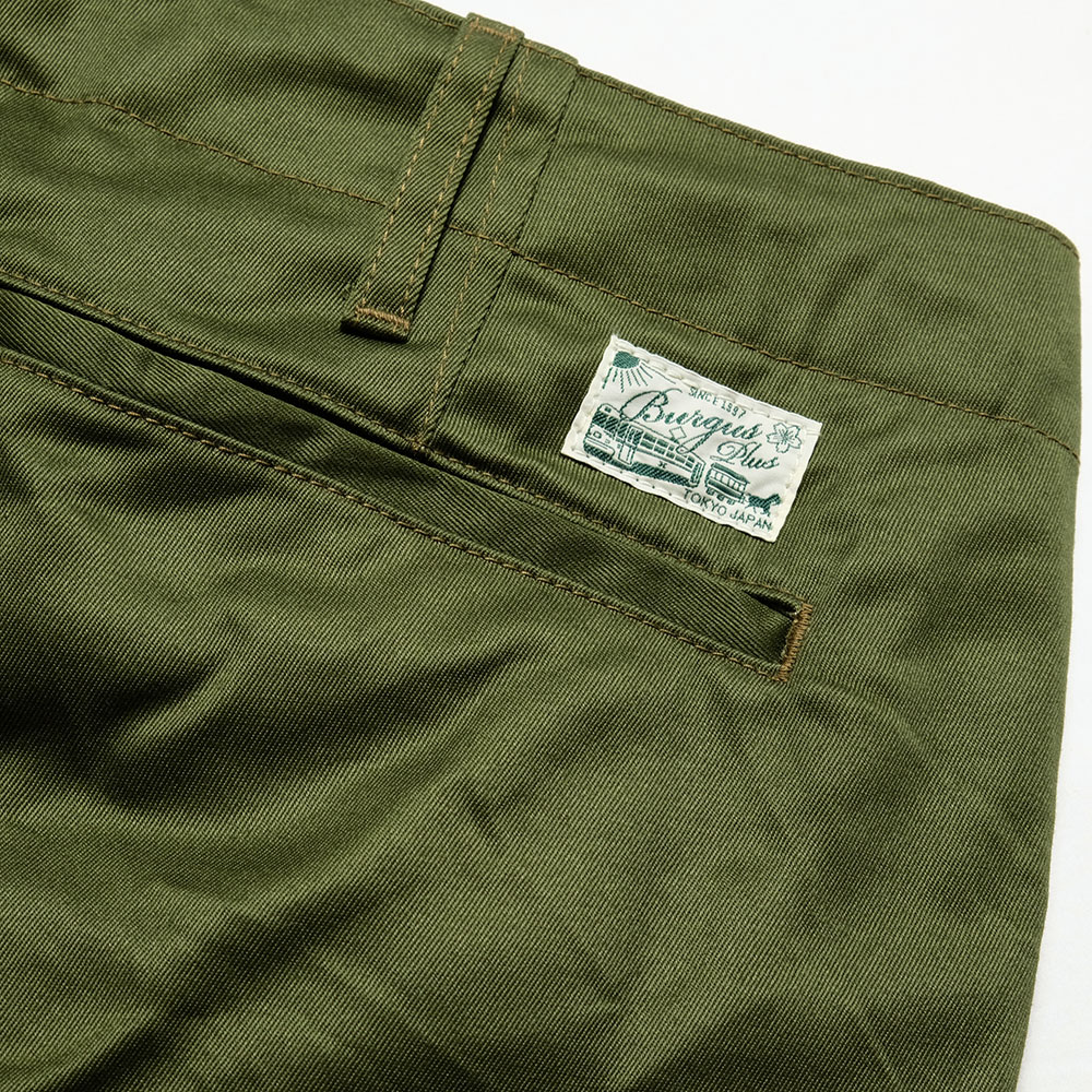 Burgus Plusのトップセラーアイテム。高級感のある光沢としなやかさを持ち、しっかりとした手持ち感のあるウェストポイントチノクロスを採用。股上をやや浅めに設定し、綺麗なテーパードを描いた美しいシルエットです。腰まわりのおさまりとキレイなラインはまさに現代のチノパンにふさわしい1本です。
