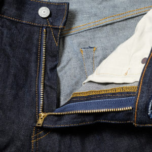真鍮製のジッパーを使用。厚手のジーンズでも耐える強度を持っています。