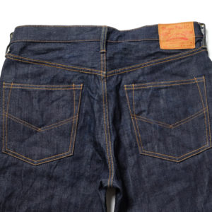 フージャン綿を使用した上質なオリジナルデニム。ピュアインディゴで濃色に染め上げたタテ糸は、穿き込むほどにきれいな色落ちを見せます。ややゆったり目のリラックスフィットストレートモデル。直線的な脇線は、腰回りの収まりをよくし、太めのシルエットでも幅広く着こなせるオールマイティジーンズです。