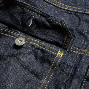 デザインは、時代背景に沿った通称「2nd セカンド」と呼ばれるフラップ付き2ポケット。フロントプリーツ、シンチバック、袖口のあき位置などビンテージのディテールをしっかりと踏襲しながらも、フロントプリーツの留めのボックスステッチ、さらにはシルエットの見直しなどBURGUS PLUS流に進化させたデニムジャケットです。