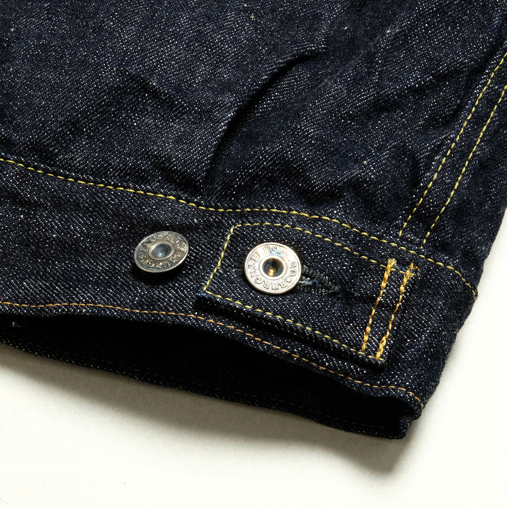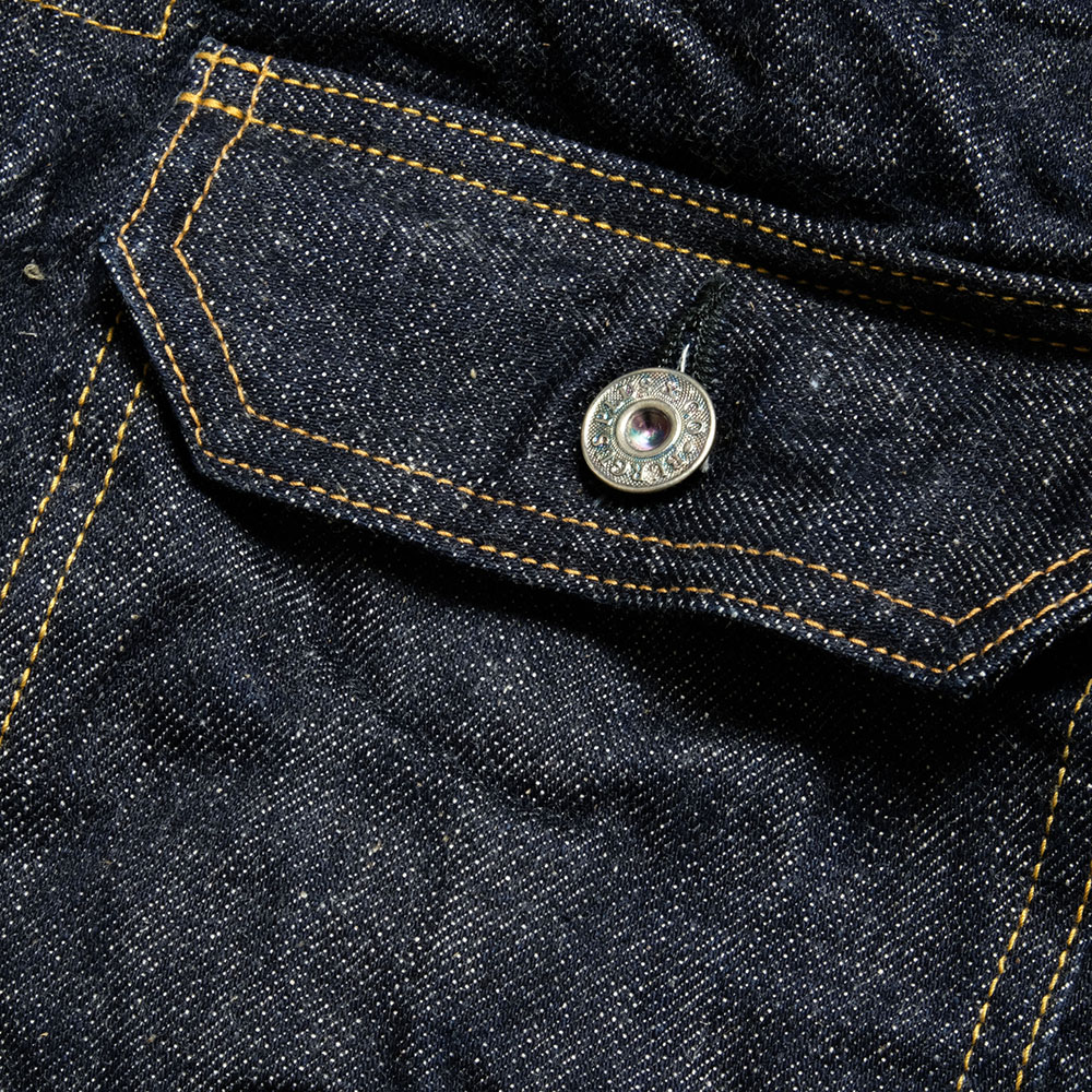 人気の高い通称「2nd セカンド」と呼ばれるデニムジャケット。特徴的な2ポケットを配し、コンパクトなシルエットにアレンジしています。生地は天然藍を使用してロープ染色によって染め上げたインディゴ糸を使用。3種類の太さの糸を使うことにより、凹凸感のある、14oz相当のセルヴィッジデニムです。